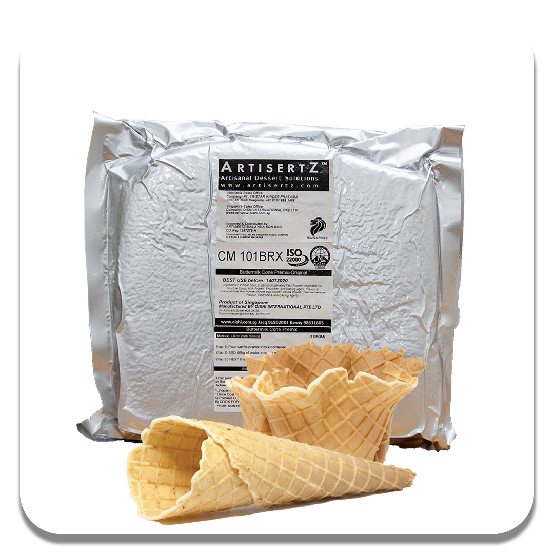 CM 105 merupakan premix atau bahan siap pakai untuk pembuatan cone ice cream, yang membuat pekerjaan pembuatannya menjadi lebih mudah dan singkat. CM 105 ialah tepung yang diformulasikan agar tercipta rasa yang khas dan memiliki tekstur yang lembut.